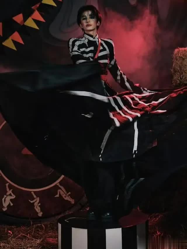 我还反复观看了他在红毯中央停下的片段:灯光洒在他身上,高定的面料泛着光,油彩的碎钻如同星星般闪烁着,周围的喧嚣仿佛瞬间静止。弹幕里满是 “疯了但好绝” 的刷屏,真的太能理解这种感受了 —— 在所有人都追求 “安全美颜” 的时代,他敢于将油彩画在脸上,并把高定穿出艺术感,这份孤注一掷的勇气,比任何热搜数据都更具感染力。后来看到话题单日破亿,才明白原来有如此多的人被这份 “不取悦的美” 所打动,这大概就是艺术表达的强大力量吧!